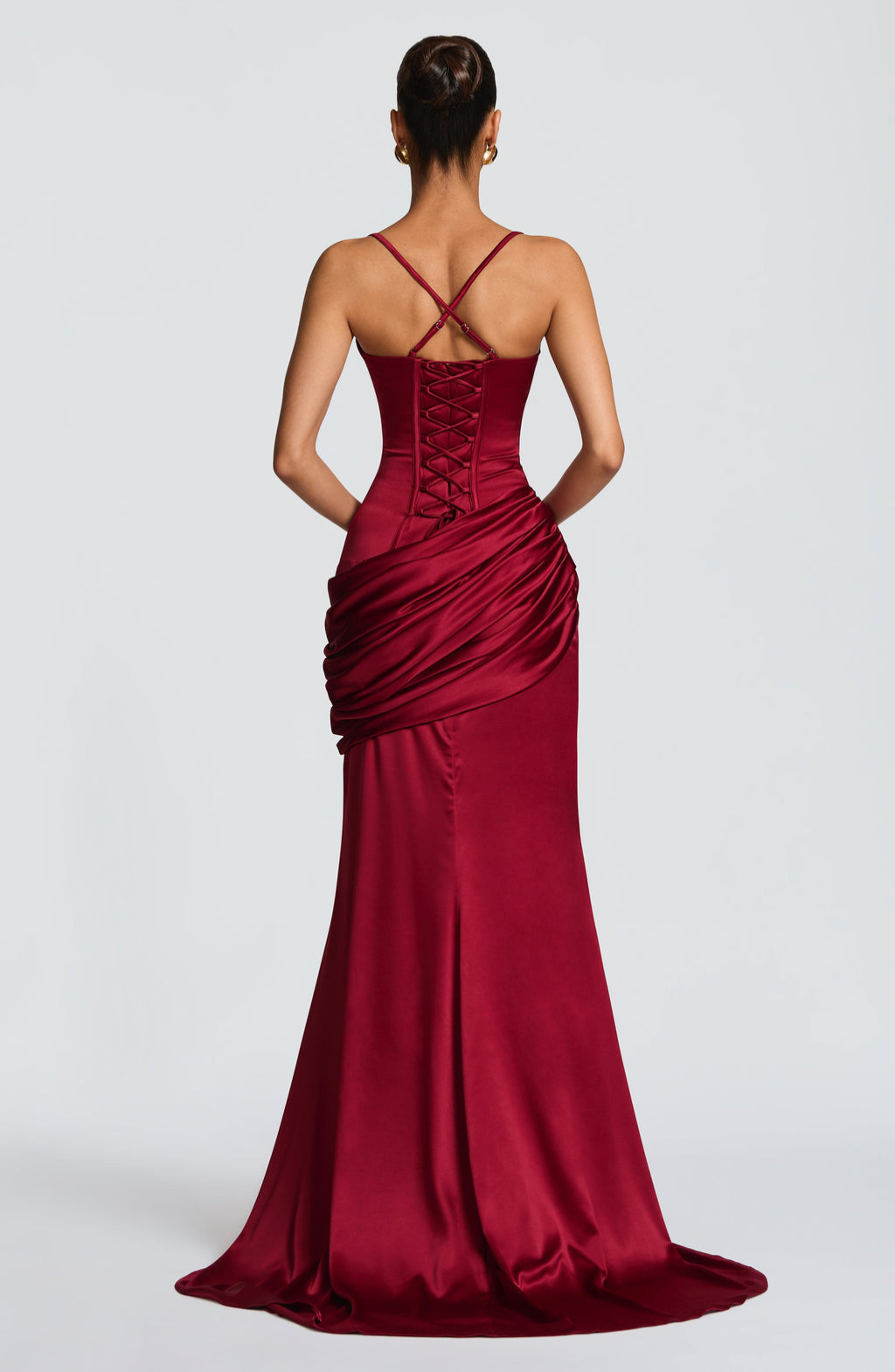Designed for nights that deserve full attention. The Midnight Gown delivers a sleek, commanding presence with its sculpted bodice, soft draping through the hips, and a fluid floor-length finish that moves effortlessly as you walk. It’s bold without trying, refined without restraint — the definition of modern eveningwear.