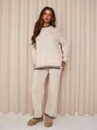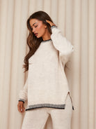 With its relaxed fit and ultra-soft knit fabric, this set keeps you warm and cozy while still feeling elevated and put-together. The contrast stitching detail adds a subtle, modern touch, making it an instant wardrobe favorite for the season.