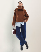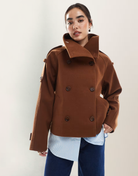 Tailored, timeless, and effortlessly cool — this cropped trench coat elevates every outfit. With its sculpted silhouette, soft textured fabric, and double-breasted detailing, it brings that quiet-luxury energy that turns heads everywhere you go.