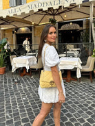 Feel confident, carefree, and effortlessly feminine in this romantic mini made to shine—whether you’re strolling cobbled streets or catching golden hour with the girls.